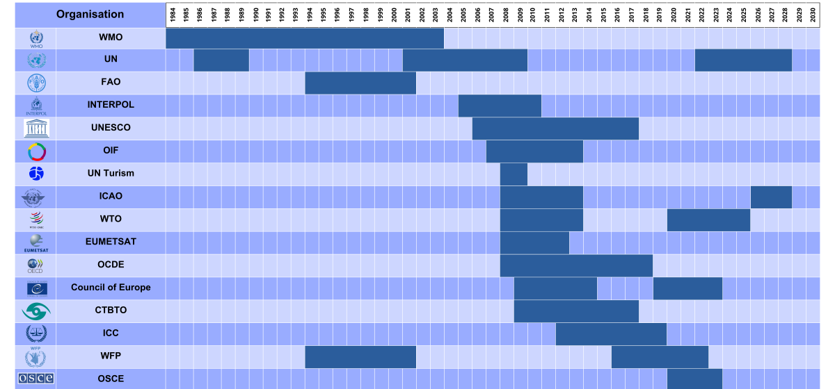 Over the past forty years, the Court has carried out continuous external audits of at least one UN-related organization. : Here is the list of international organizations that have entrusted the Court of Auditors with an external audit mandate at least once: