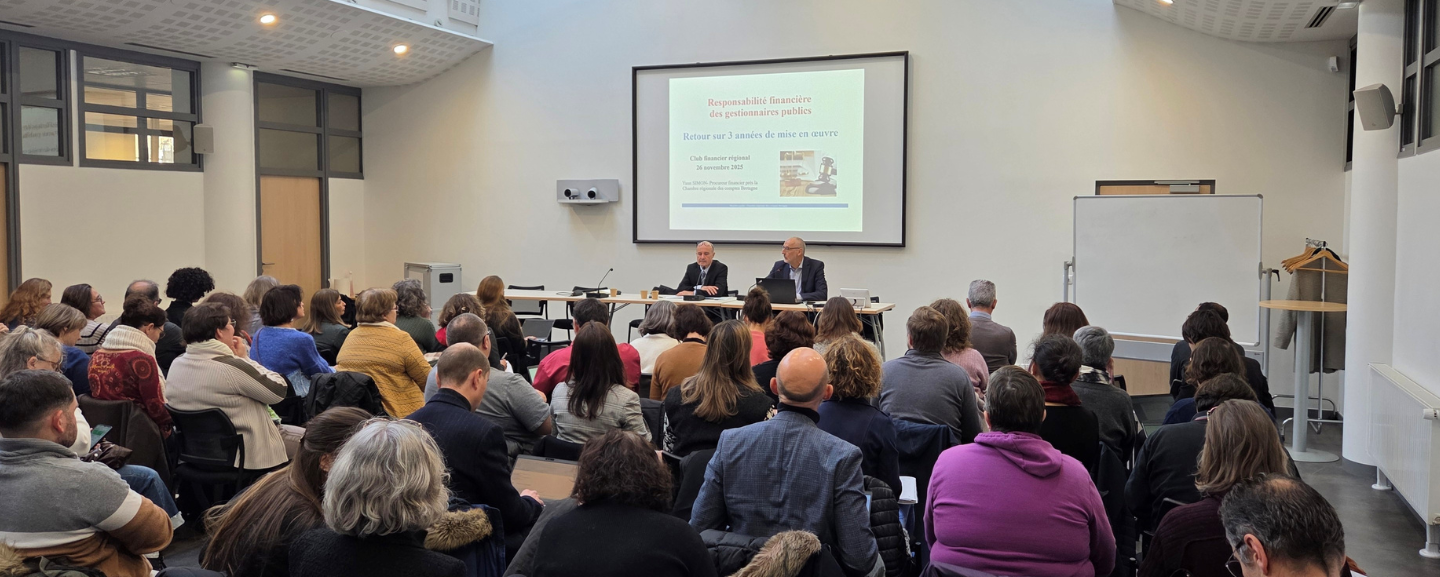 Le 26 novembre 2025, à l’invitation du contrôleur budgétaire régional (CBR), le procureur financier près la chambre régionale des comptes Bretagne a présenté au « club financier régional » les enjeux de la responsabilité financière des gestionnaires publics (RFGP) et fait le point sur trois années de jurisprudence.
